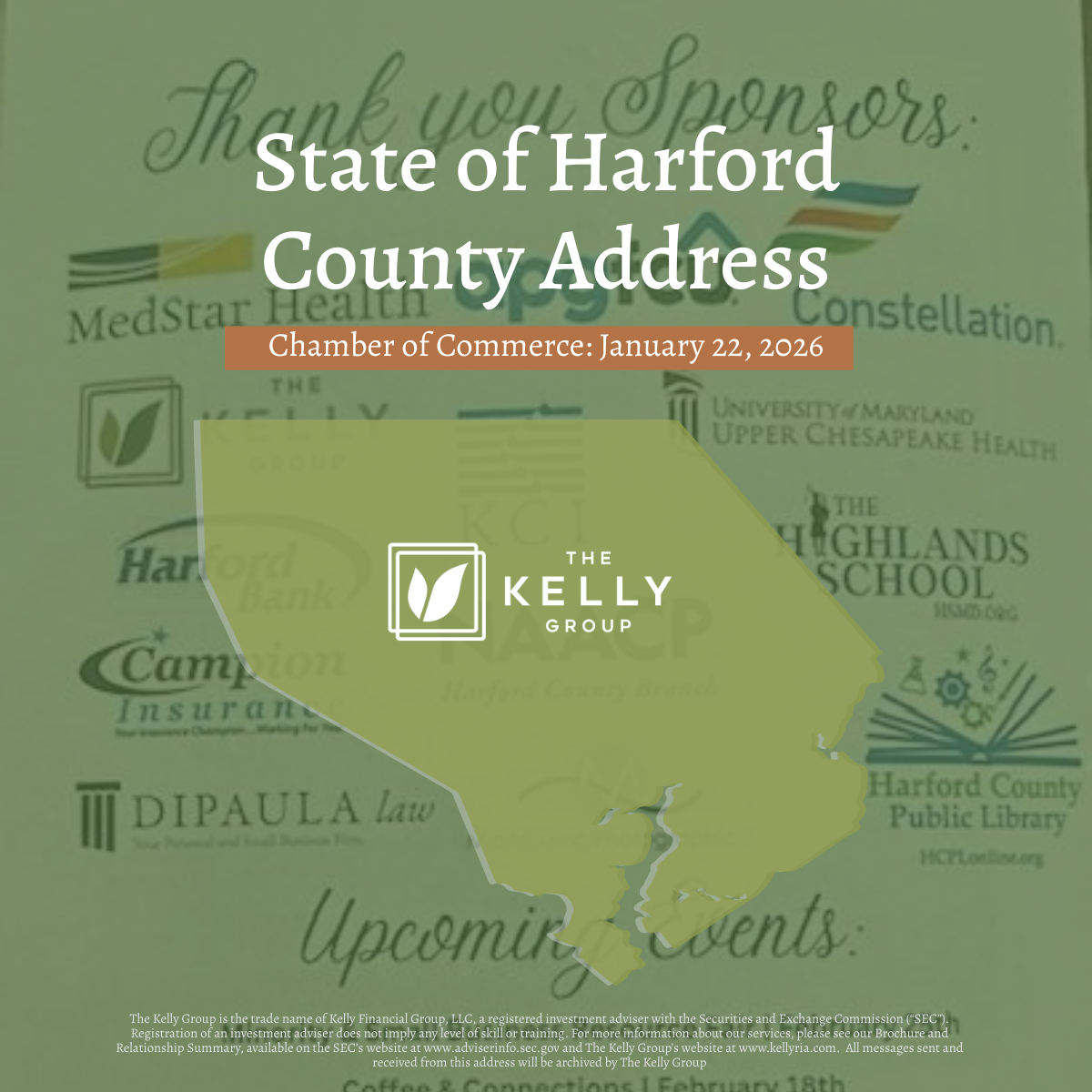 On January 22, The Kelly Group had the honor of serving as a proud sponsor of the Harford County Chamber of Commerce’s “State of Harford County Address,” held at the picturesque Water's Edge Events Center in Belcamp. Representing the firm at this distinguished annual event were Anika Jones and Michele Wolbert.