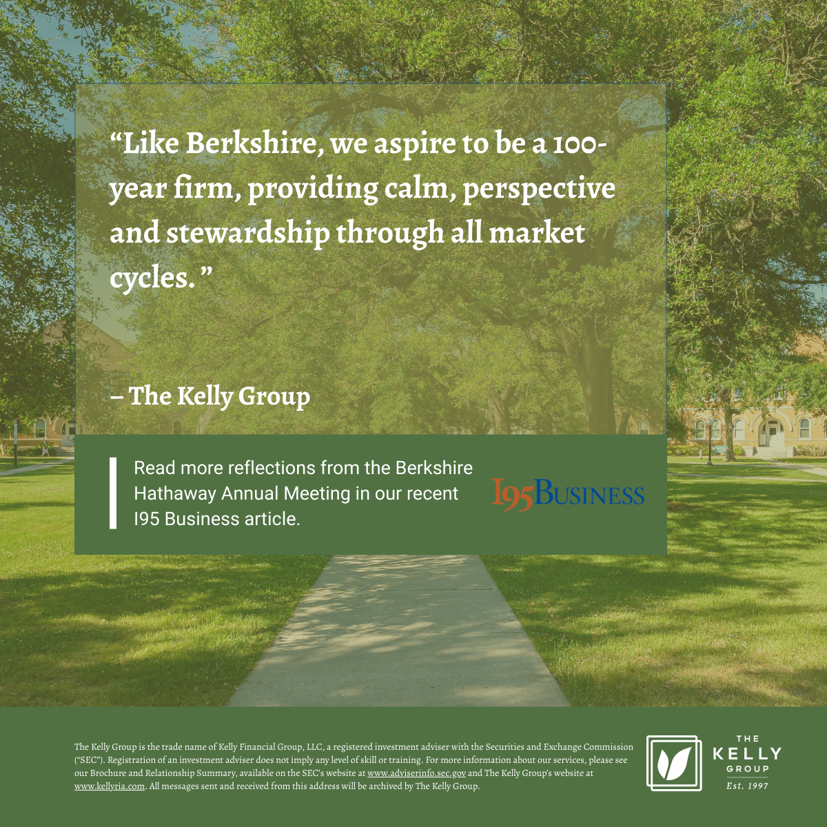 As we approach 30 years as a firm, we see these lessons as essential to our own path toward a 100-year future. Read more about our insights from Omaha: https://www.kellyria.com/insights-blog