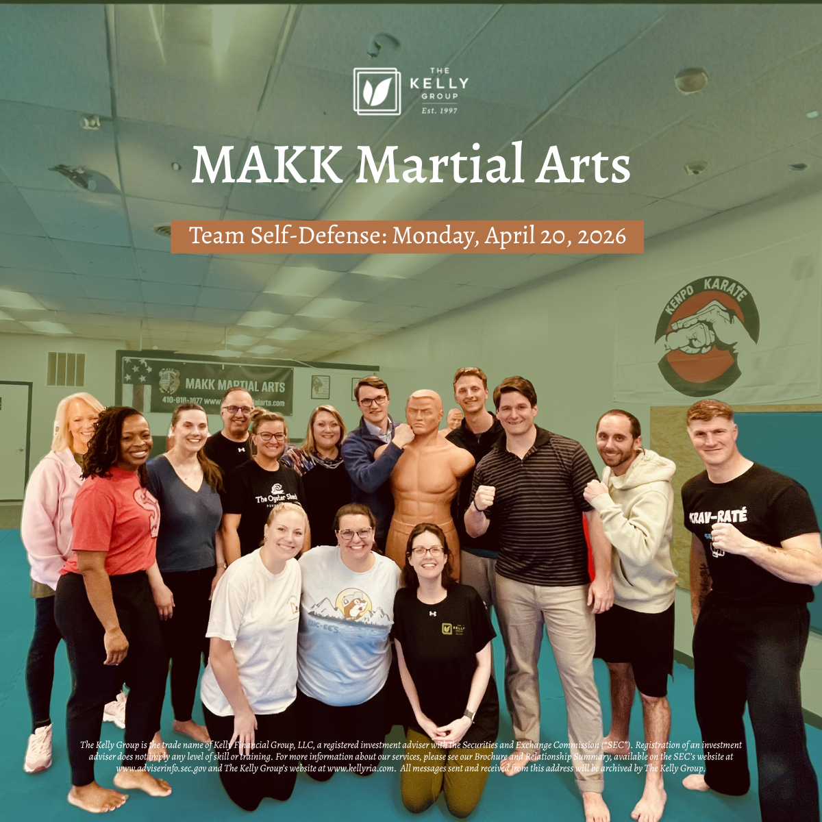 Team bonding looks a little different at The Kelly Group! This week, we stepped outside the office and onto the mat for a self-defense class at Martin’s American Kenpo Karate School in Fallston.